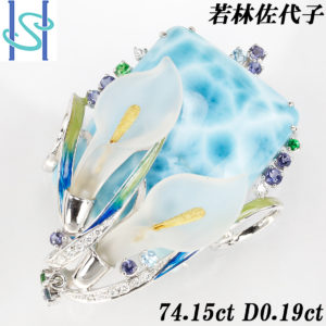 商品名:若林佐代子 ラリマー ブローチ 74.15ct D0.19ct 水芭蕉 K18WG/Pt900/K18/K14WG