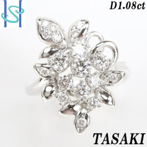 【SH50077】タサキ 田崎真珠 ダイヤモンド リング 1.08ct K18ホワイトゴールド 花 フラワー【中古】