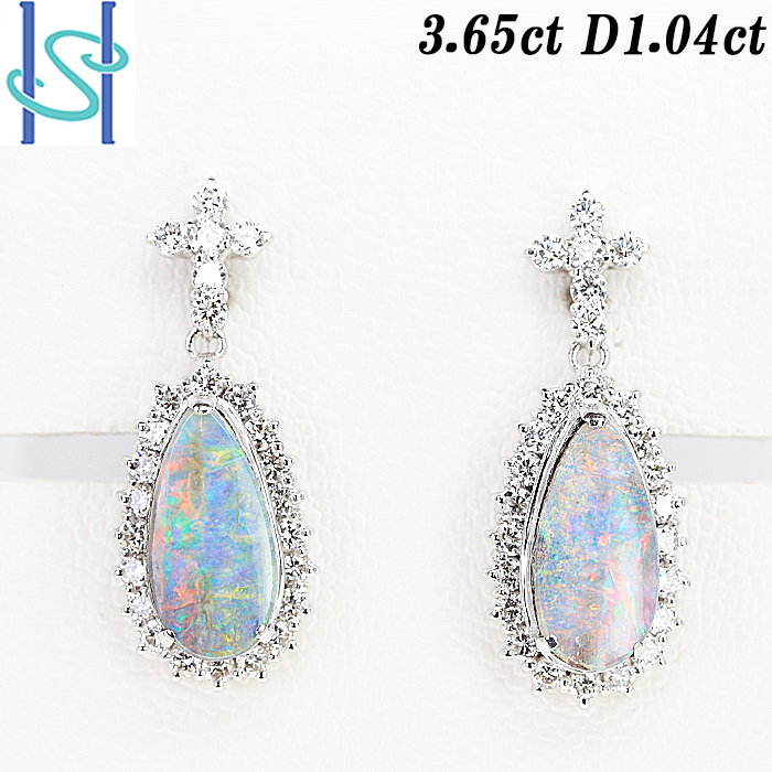 商品名:ボルダーオパール イヤリング 3.65ct D1.04ct K18ホワイトゴールド