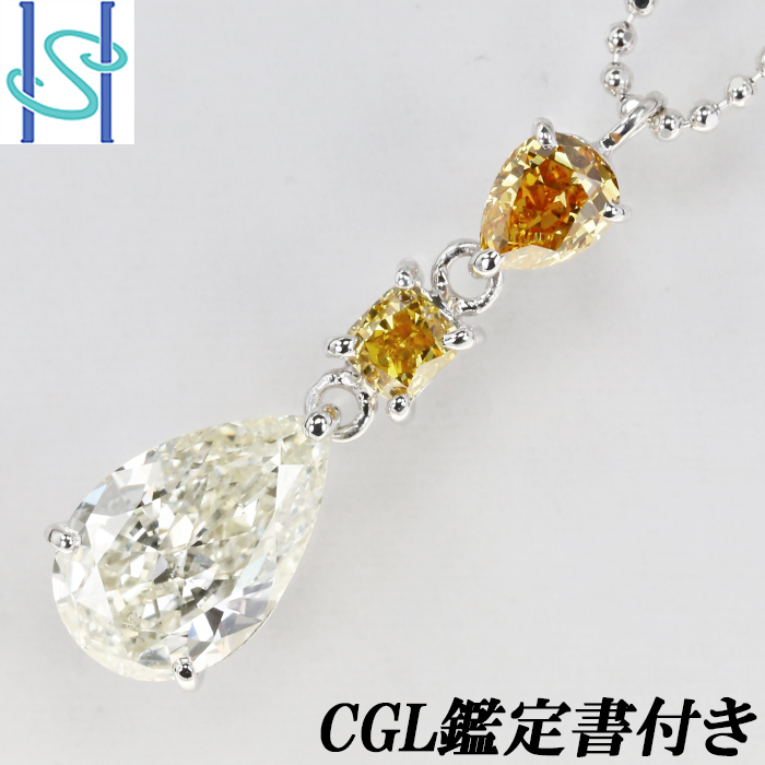 商品名:ペアシェイプダイヤモンド ネックレス 1.287ct M SI1(F) 0.315ct 0.192ct プラチナ900/K18WG イエローダイヤモンド