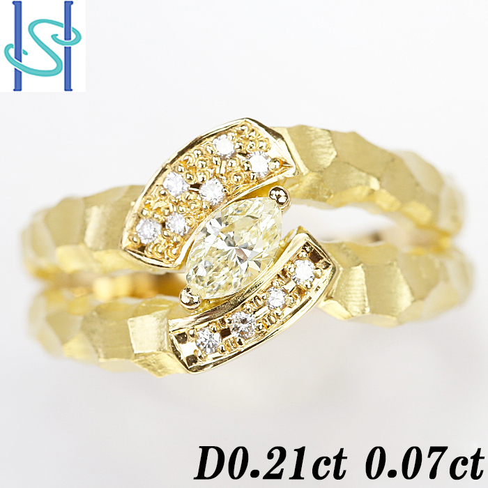 商品名:イエローダイヤモンド リング 0.21ct 0.07ct K18イエローゴールド マーキスカット