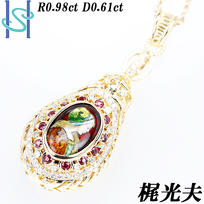 商品名:梶光夫 エマイユ ネックレス ルビー 0.98ct D0.61ct K18イエローゴールド プラチナ850 七宝 エマーユ