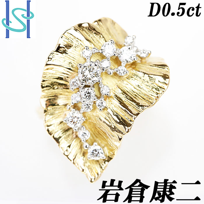 商品名:岩倉康二 ダイヤモンド リング 0.5ct K18 イエローゴールド プラチナ Pt900 葉 リーフ 植物