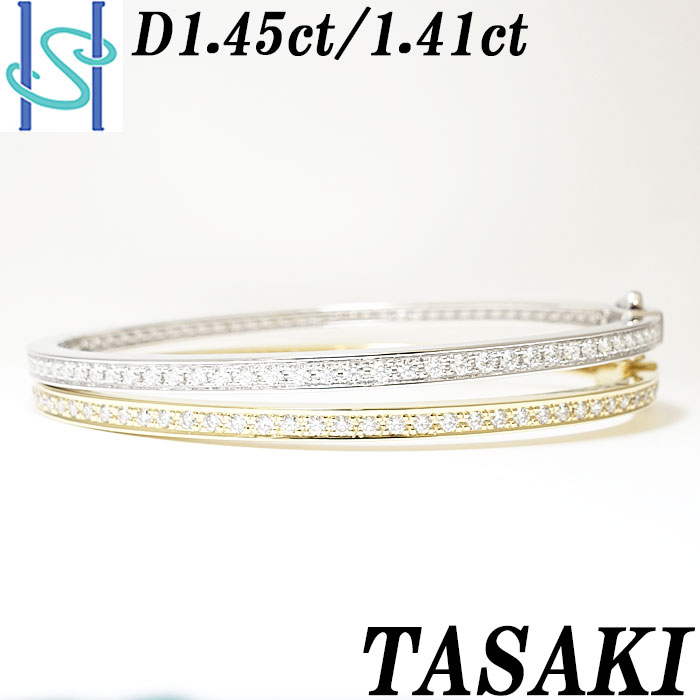 商品名:タサキ 田崎真珠 ダイヤモンド バングル 1.45ct 1.41ct K18 イエローゴールド ホワイトゴールド 2本セット ブレスレット TASAKI