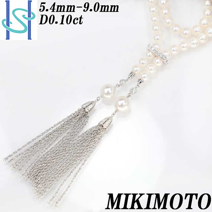 商品名:ミキモト 無調色アコヤパール ネックレス ラリエット 5.4mm-9.0mm ダイヤモンド D0.10ct K18 ホワイトゴールド MIKIMOTO