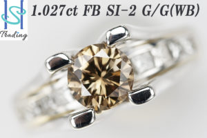 【SH27202】即決~Pt900 ブラウンダイヤモンド リング 1.027ct D0.56ct FB SI-2 G/G WB