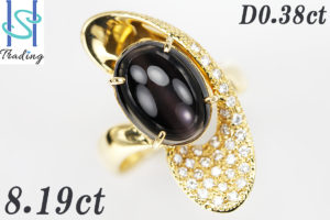【SH27209】値下げ交渉あり~K18 シリマナイトキャッツアイ リング 8.19ct D0.38ct