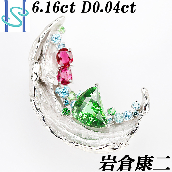 商品名:岩倉康二 グリーントルマリン ブローチ 6.16ct ダイヤモンド 0.04ct プラチナ Pt900 K18 ホワイトゴールド 作家 デザイナー ガーネット アクアマリン ジルコン