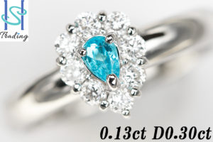 パライバトルマリンのカットに合わせて、ペアシェイプ状にセットされた可愛らしいデザインです。
