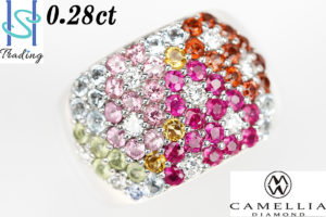 幅広のアーム前面にびっしりとセットされた、ジェムストーンが華やかな印象を与えます。