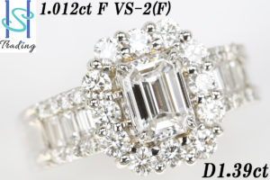 【SH26911】Pt900 ダイヤモンド リング 1.012ct F VS-2 (F) 1.39ct エメラルドカット【中古】