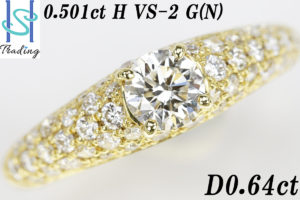 【SH29384】K18 ダイヤモンド リング 0.501ct H VS-2 G (N) 0.64ct【中古】