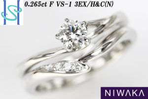 【SH35384】俄 NIWAKA Pt950 ダイヤモンド リング 0.265ct F VS-1 3EX/HC 初桜 2本セット【中古】