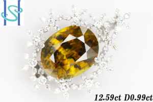 スフェーンの周囲をお花型にダイヤモンドをセット。