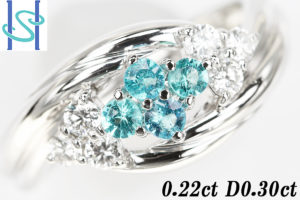 【SH39192】Pt900 パライバトルマリン リング 0.22ct D0.30ct【中古】