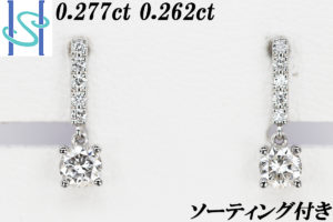 【SH38260】Pt900 ダイヤモンド ピアス 0.277ct 0.262ct 中央宝石研究所ソーティング付き【新品】