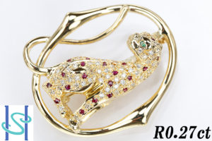 【SH39477】K18 ルビー ペンダントトップ ブローチ 0.27ct D0.41ct パンサー【中古】