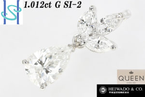 【SH39789】クイーン 平和堂 Pt950 ダイヤモンド ペンダントトップ 1.012ct G SI-2 0.39ct ペアシェイプ【中古】